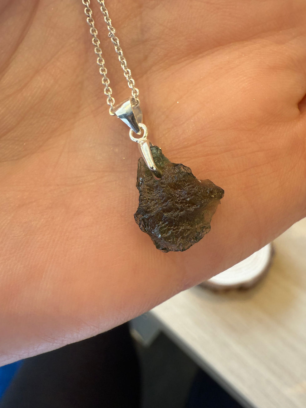 Moldavite Sterling Silver Pendant and Chain - 2.5g