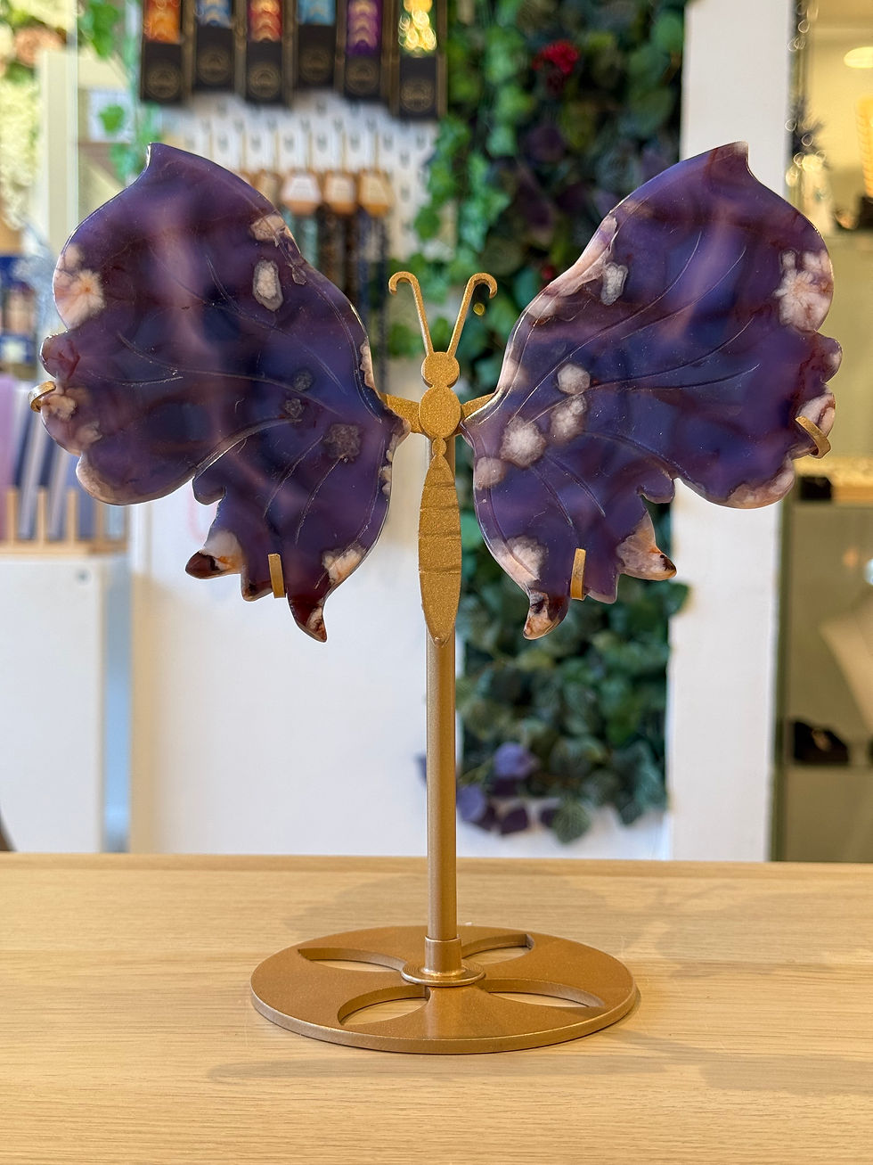 Blue Flower Agate Wings on Stand - 496g - 21cm x 21cm